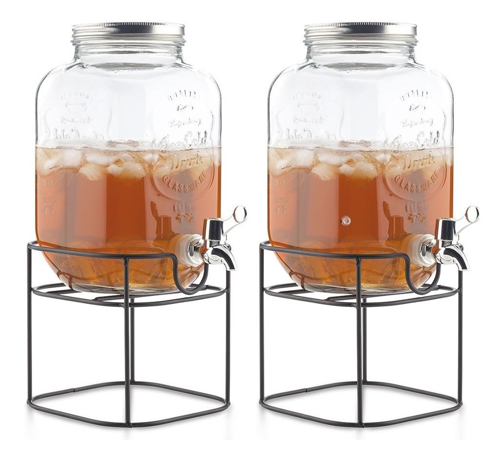 Hermoso Combo de DOS dispensadores de líquidos en vidrio con base metálica, perfecto para darle un toque vintage a tus reuniones, celebraciones, y a tu hogar. Apto para solo bebidas frías (zumos, jugos, infusiones), capacidad de CUATRO litros, cuenta con su tapa y llave. QUIERES MÁS UNIDADES? VENDEMOS AL POR MAYOR Y AL DETAL. PREGUNTA LA CANTIDAD REQUERIDA PARA COTIZAR